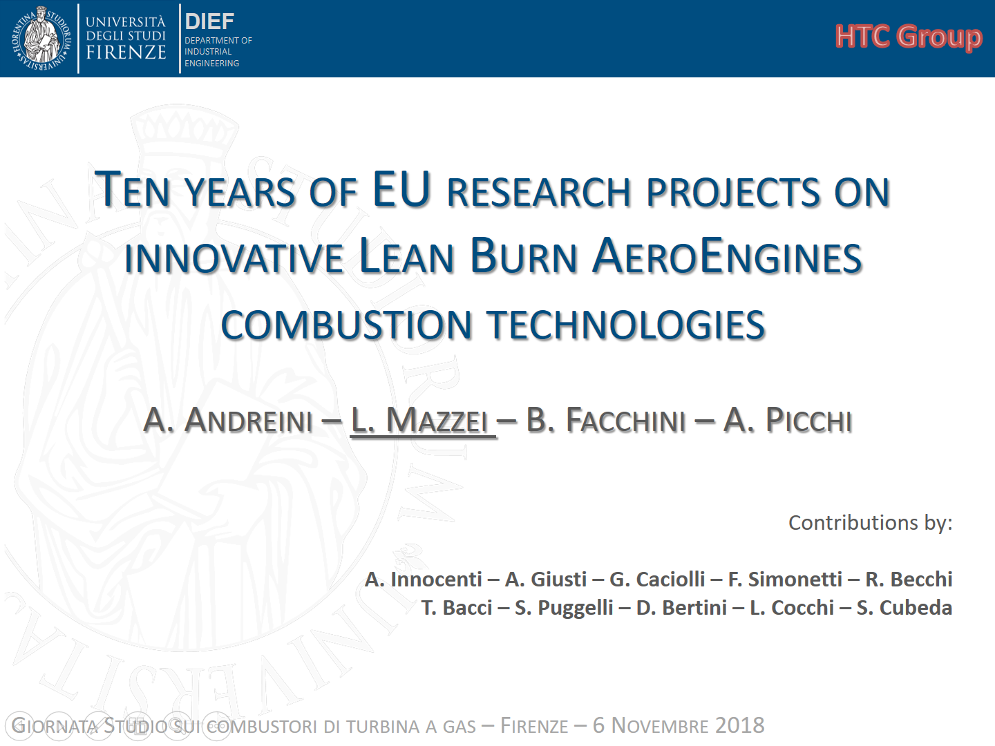 In November the University of Florence hosted a 1-day meeting concerning gas turbine combustors with the Italian universities, research centers, labs and OEMs.
